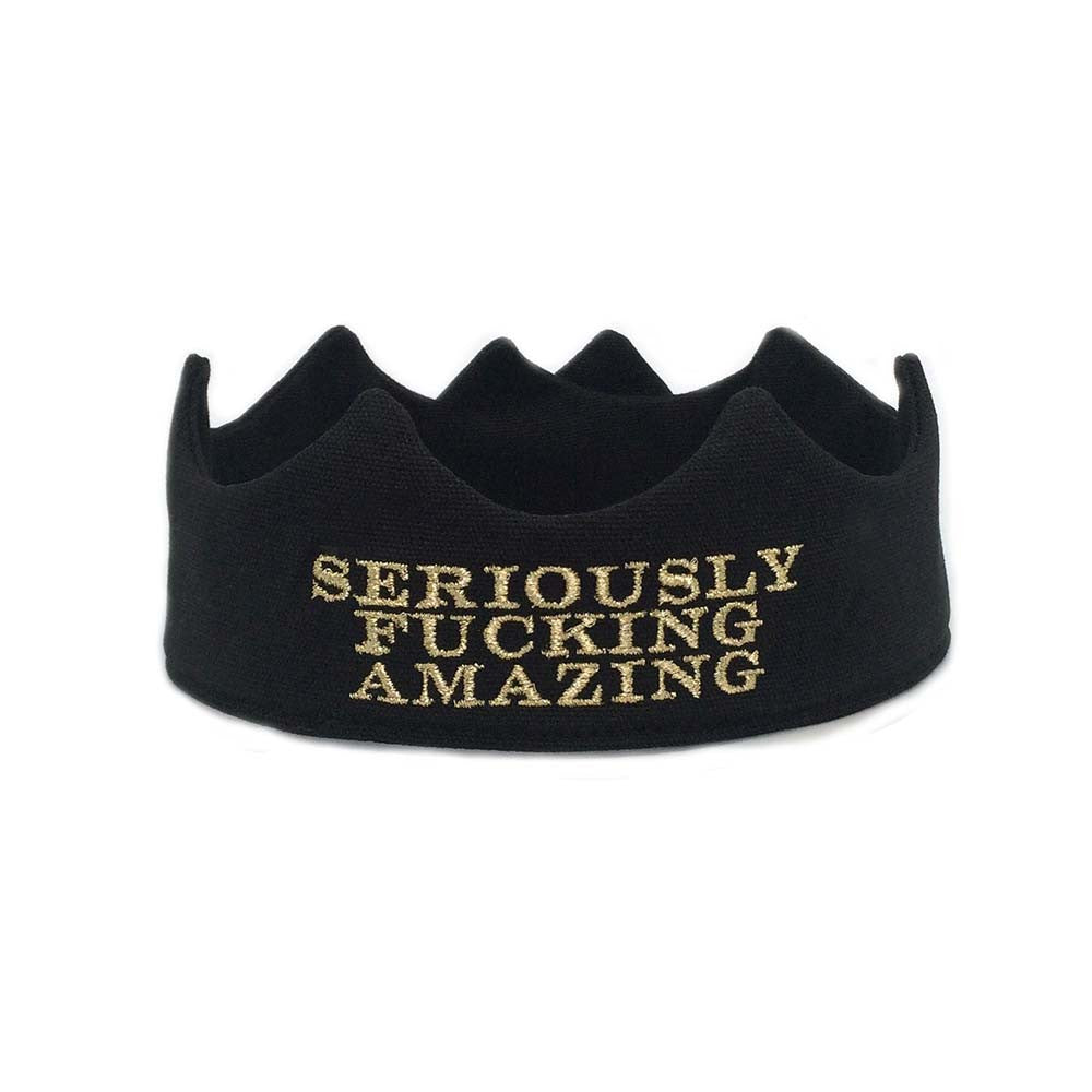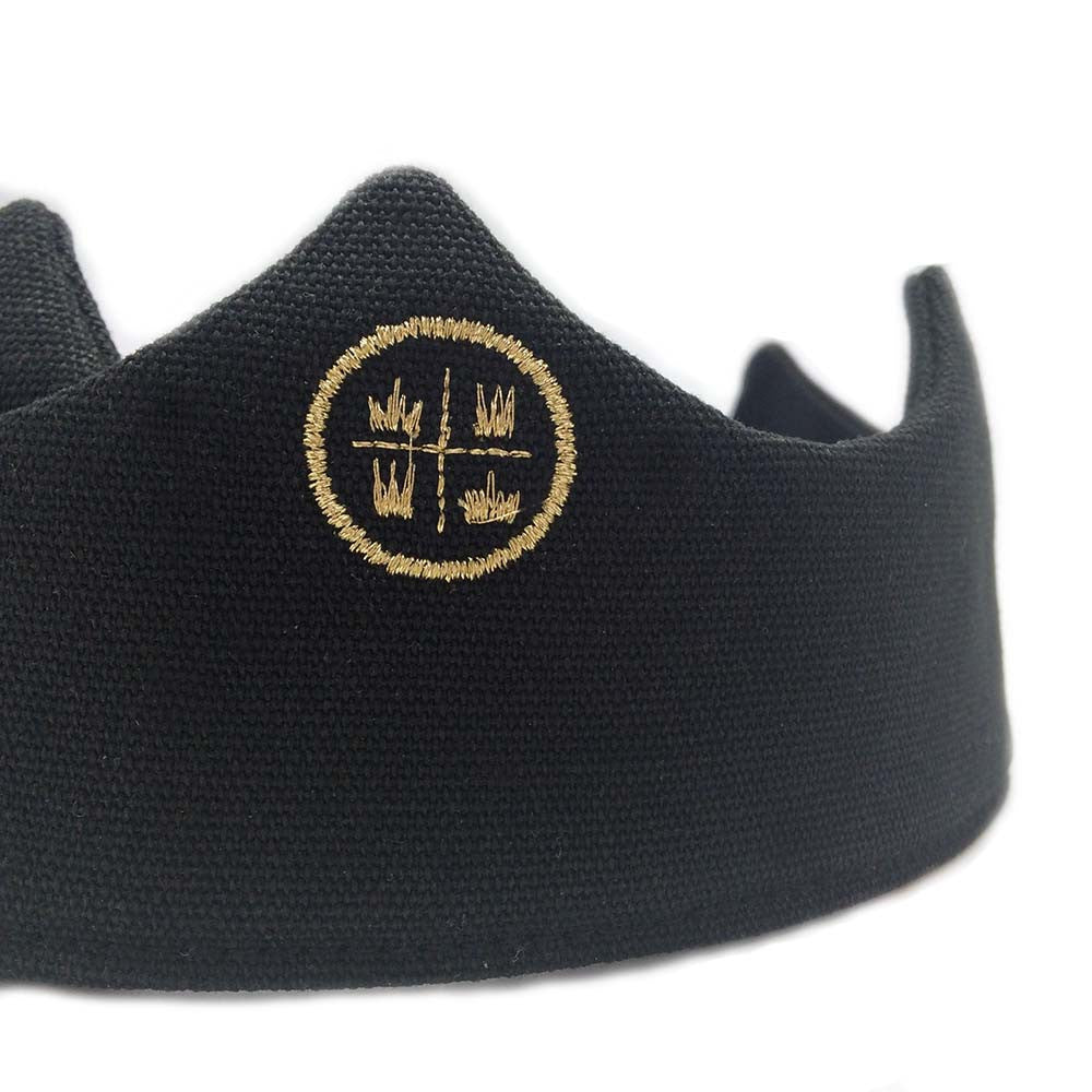 Cotton canvas with gold embroidery. Velcro enclosure. Fits all adult heads.